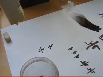 원래의 용액색깔은 약간 갈색이 나는데 종이에 찍으면 거의 검은색에 가까운 청남색으로 바뀜을 알 수 있다.