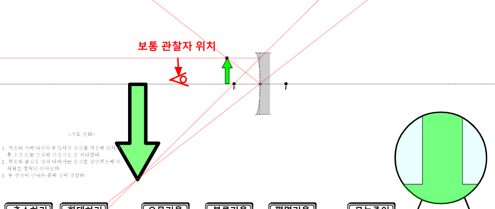 2015개정교육과정에 맞춰서 거울에 보이는 상을 직접 볼 수 있게 우측하단에 추가했습니다.
