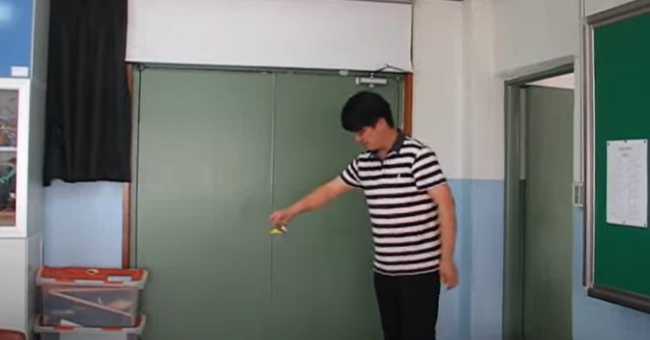 동영상에서는 떨어뜨리는 에너지를 없애기 위해 바닥에 놓은 상태로 튀어 오르게 하였다.