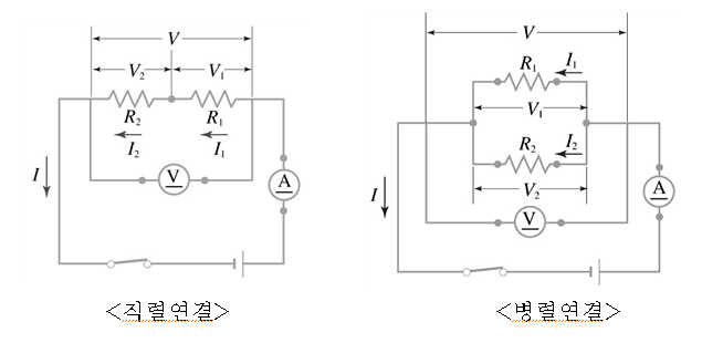 다. 저항 : 전체저항은 각 저항의 합과 같다. (R = R1 + R2)