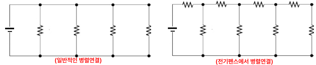 나. 전기펜스에 전원장치가 있고 사람들 하나 하나가 저항이 되어 직렬로 연결된 모습이라고 생각하면 됩니다.