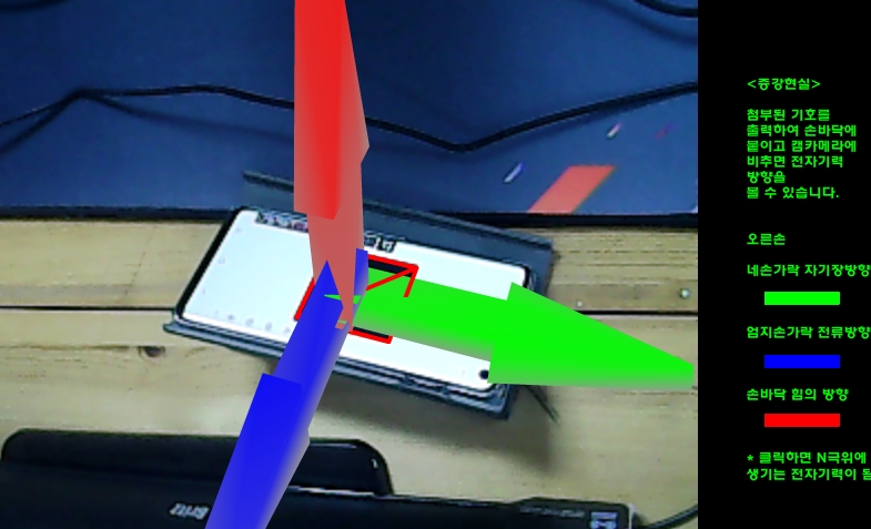 그래서 증강현실을 이용해서 전자기력을 표시하도록 만들어 보았다.