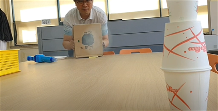 중간에 멀리 놓아둔 컵을 쓰러뜨리는 영상도 있습니다.