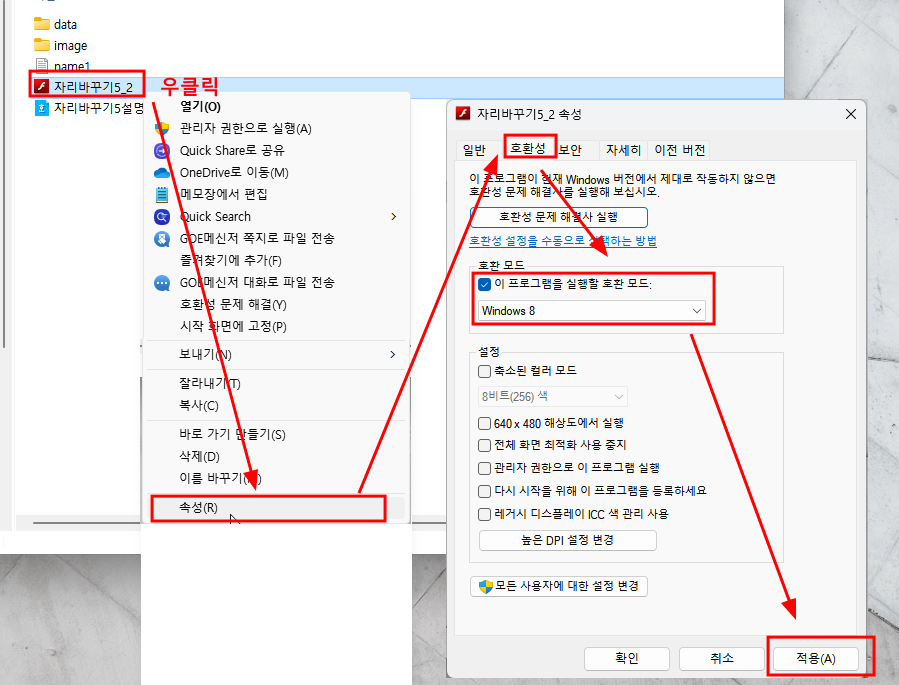<윈도우11에서 실행되지 않을 때 해결하는 방법>
