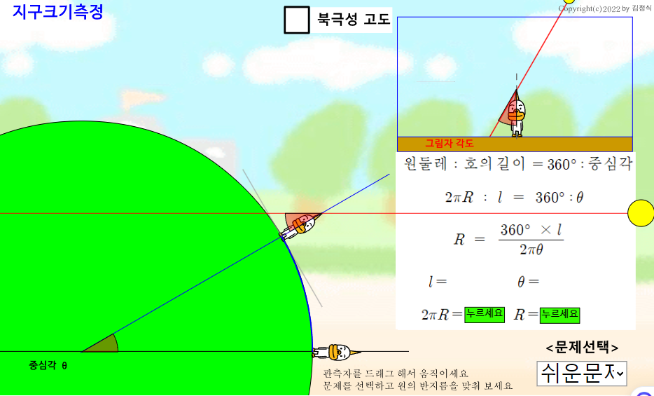 3. 지구둘레 측정 방법 프로그램(에라토스테네스 중심각과 엇각)