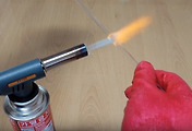 안경닦이 천으로 인젝터의 입구부분을 감싸고 작동시키면 이산화탄소가 나오면서 단열팽창 되어 온도가 내려가면서 드라이아이스로 바뀐다.(자료를 찾아보니 이산화탄소 카트리지 안에 압력은 약 50기압 정도 된다고 한다. 그래서 내부에 있는 이산화탄소는 아마 상온에서 액체상태로 존재하는 것으로 보인다.)