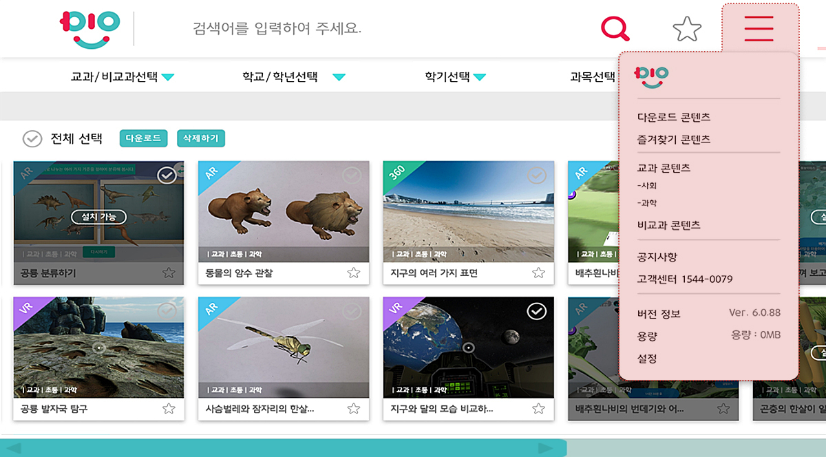 앱을 설치하고 실행시킨 후 앱 상에서 원하는 콘텐츠를 추가로 내려 받아 실행시키면 된다.