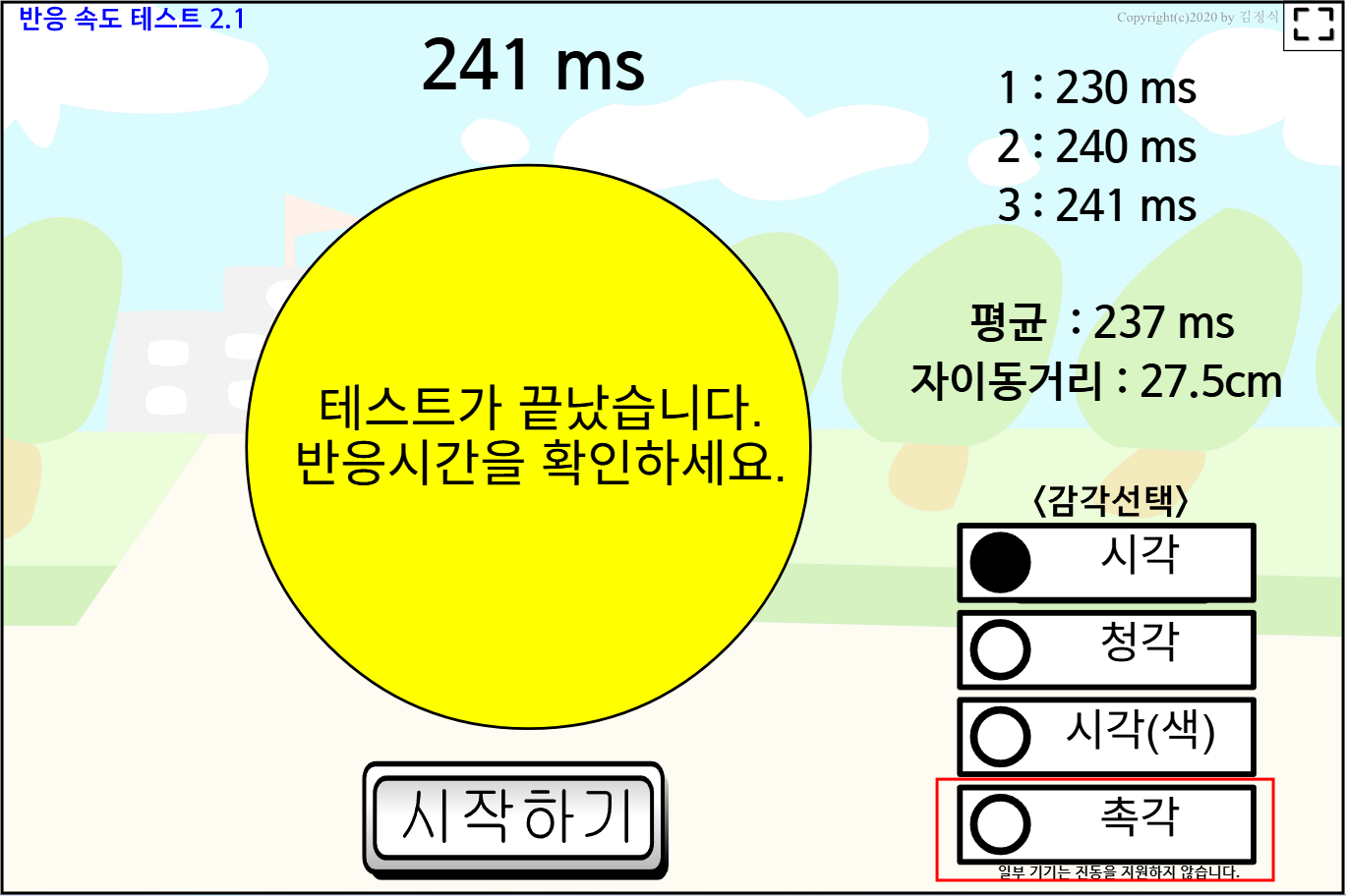 1. 촉각 테스트 기능을 추가 했다. 스마트폰 진동이 울리는 순간 화면을 누르면 된다.(일부 기기는 지원하지 않는다)