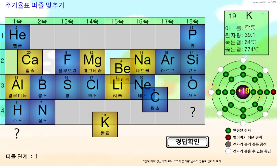 마우스로 드래그 해서 퍼즐 맞추듯이 원소를 맞추면 된다.