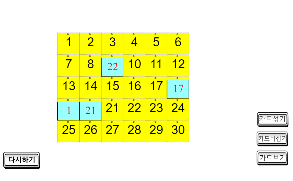 단 1번 할때 마다 미션을 실패하면, 매번 카드의 배열은 무작위로 바꿔야 한다.