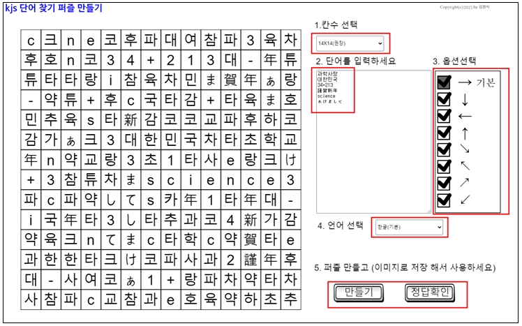 <2025.03.01 에 더 간단한 온라인용 kjs 단어찾기 퍼즐 만들기5.0 이 개발되었습니다.>