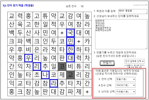 kjs 단어찾기 퍼즐 만들기5.0 (온라인 과제 만들기1)