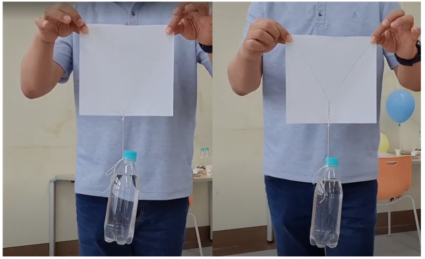 Y자 모양의 종이로 들어올릴 때 힘의 합력을 고려하여 종이를 팽팽하게 잡아 당겨야 더 잘  버틸 수 있다.