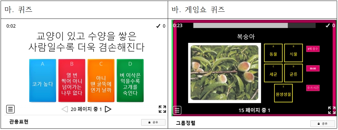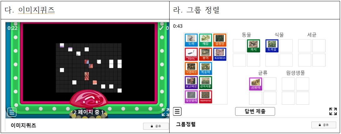 라. 커뮤니티에서 다른 사람이 만들어 공개한 다양한 자료를 가져다가 바로 과제로 낼 수 있다. 무료계정에서 5개의 활동을 만들었다면 편집은 불가능하지만, 그 문제가 마음에 든다면 그대로 과제로 학생들에게 제공하는 것은 가능하다. 물론 나중에 결과도 받아 볼 수 있다.