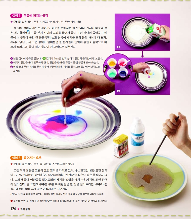 표면장력과 관련된 다양한 실험들을 시도해 봤습니다.