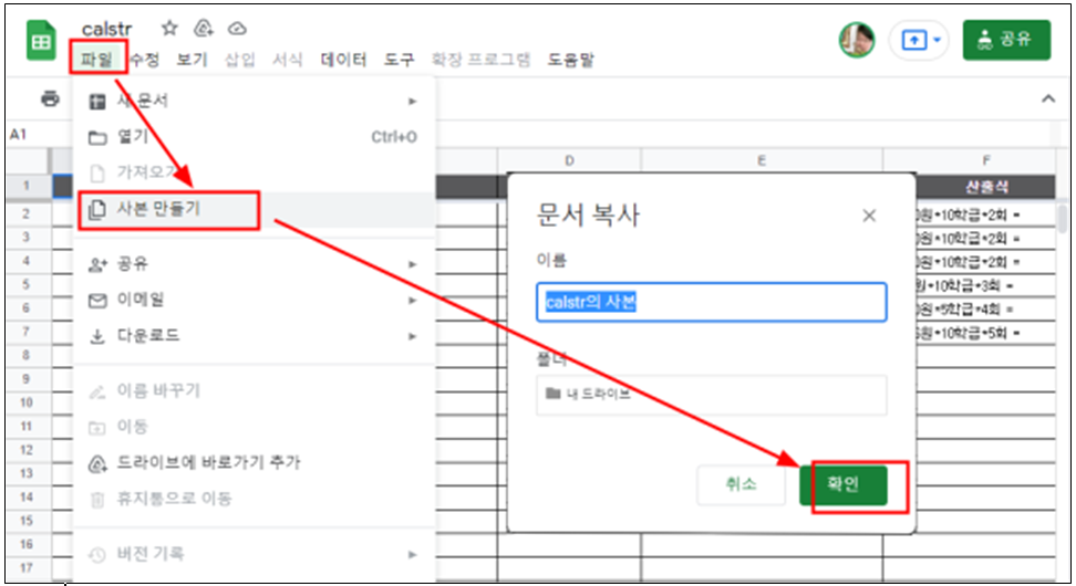 2. calstr 원본(아래 링크)에 접속해서 사본만들기를 눌러 사본을 복사해 가서 본인의 문서로 만든다.