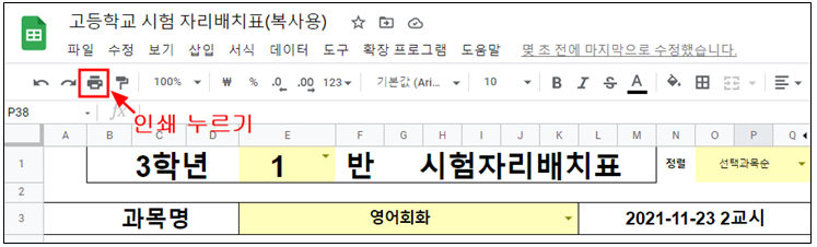 아래 링크가 고등학교 시험자리 배치표 원본이다. 아래 링크에 들어가서 사본 복사해 가서 자신의 학교에 맞게 사용하기 바란다. 학년별로 1개씩 필요하다. 2,3학년이 사용한다면 2개의 사본을 각각 만들어 사용해야 한다.