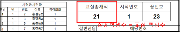 <중요 : 교실총재적수는 자동으로 입력된다. 만약 자동으로 입력되지 않는 다면 자신의 반에 맞게 입력한다.>