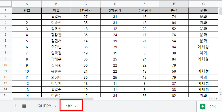 구글 스프레드시트 QUERY 함수 이용해서 학생 데이터 가공하기 2
