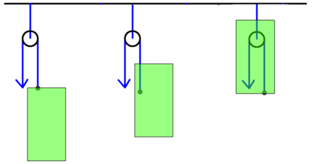 아래 3개의 그림은 같은 고정도르래에 같은 박스가 매달려 있는 고정도르래 그림이다.