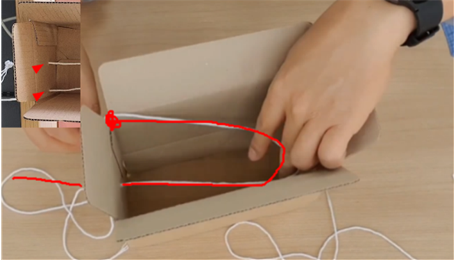 택배박스(A형B골 200X100X100mm), 송곳, 실, 가위)