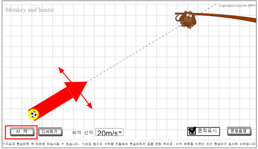 공의 위치와 원숭이의 위치를 드래그 해서 바꿔 볼 수 있다.