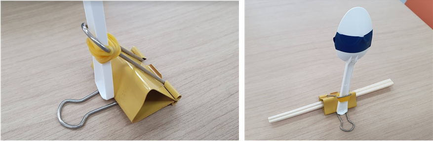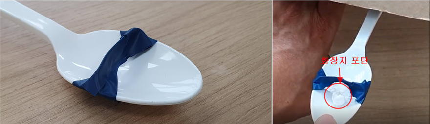 5. 숟가락에 테이프를 이용하여 포탄을 올려 놓을 수 있는 거치대를 만든다.