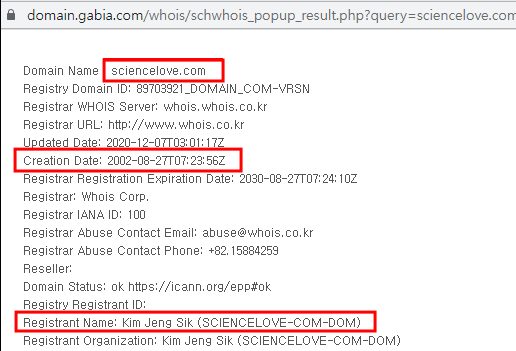 그러다가 2002년에 sciencelove.com 이라는 지금 사용하고 있는 도메인을 구입하면서