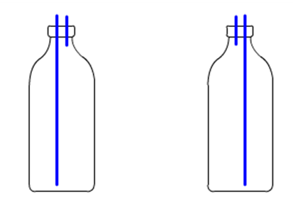 2. 페트병 내부 한쪽만 튜브가 바닥에 닿도록 뚜껑에 끼워 긴 관을 만든다. 이런 페트병 2개를 준비한다.