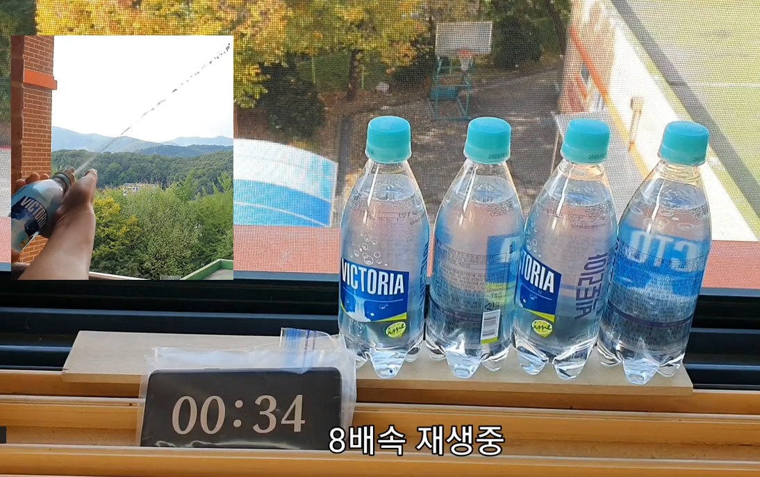그리고 탄산수 여러개를 동시에 흔드는게 쉽지 않다. 그래서 탄산수 2개씩을 정말 힘껏 흔들고 10초마다 뚜껑을 열면서 실험해 보았다.
