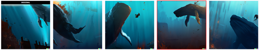 3) 이 사진을 내려받거나 저장할 수도 있지만 Variations 을 누르면 이 그림을 기준으로 다시 4개의 변형된 그림을 보여 준다.