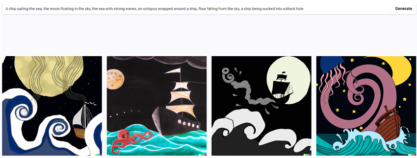 1) 문장을 직접 입력하거나 붙여넣기 하고 Generate를 눌러 주면 문장을 분석해서 일단 4개의 그림을 보여 준다.