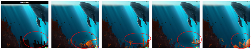 6) 또한 일부분을 지우고 다시 그림을 그리게 하면 지운 부분만 다른 그림으로 바꿔서 다시 그려 준다. 아래 그림은 아래쪽 난파선 있는 부분을 지우고 다시 그리게 해 본 것이다. 그럼 그림의 나머지 부분은 남겨두고 난파선 부분만 다른 그림으로 그려 준다.