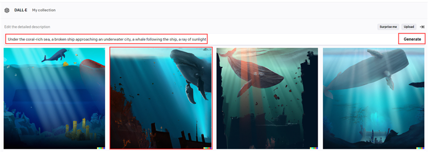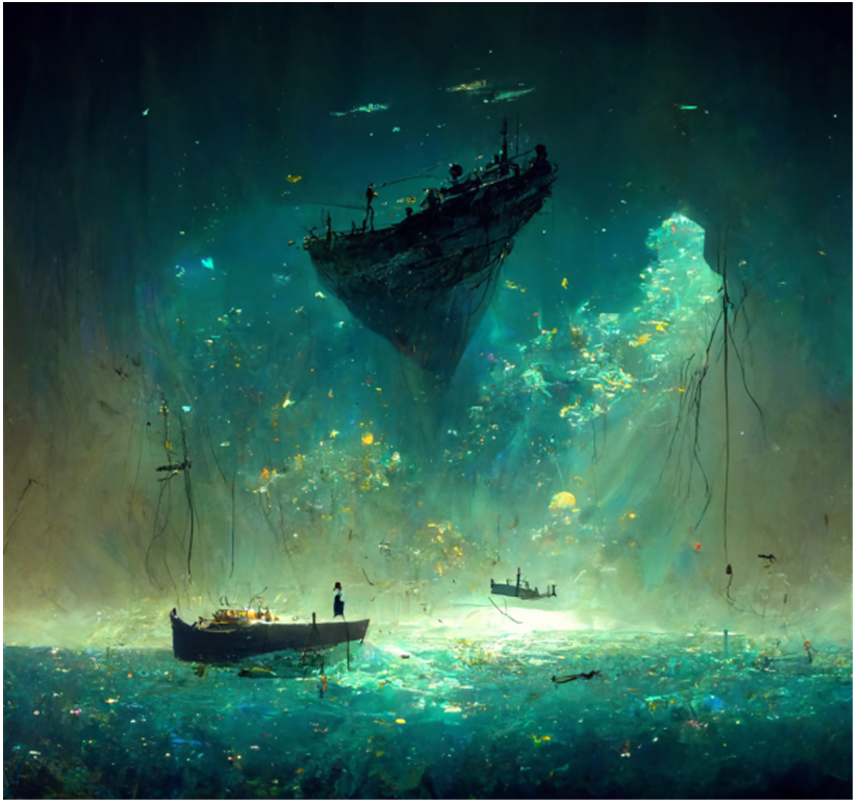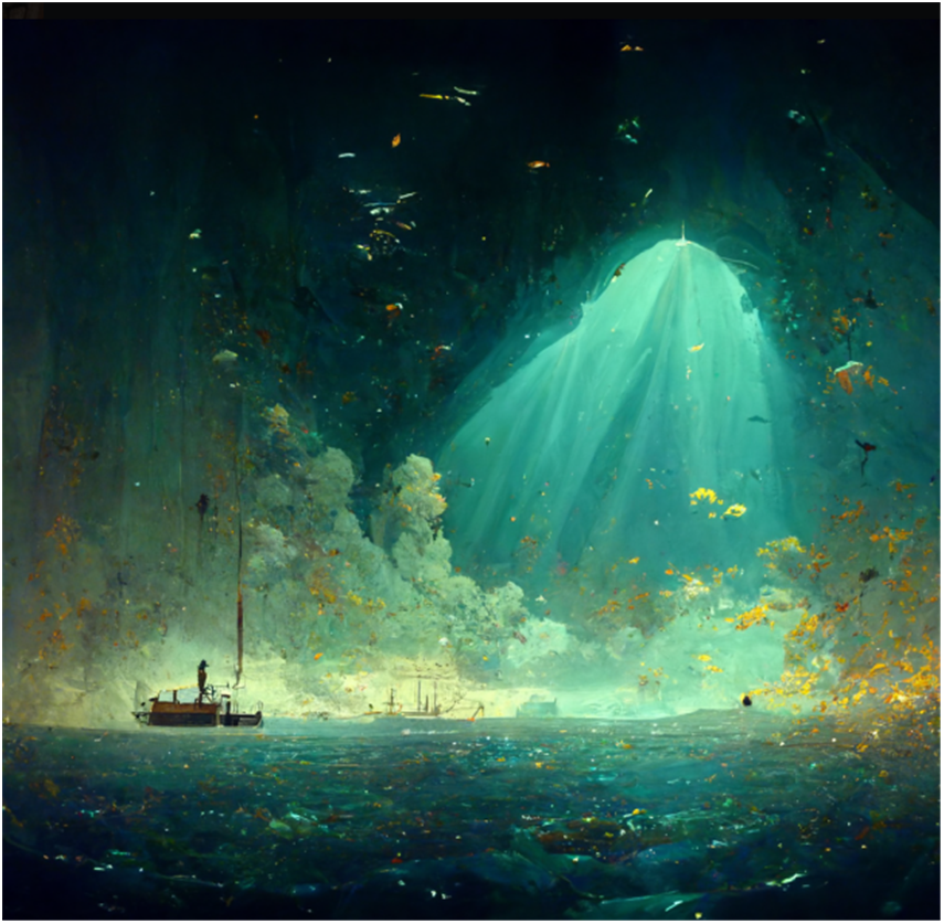 필자가 미드저니를 이용하여 바닷속을 문장으로 표현했더니 그려준 그림이다. 일단 한번 그림을 감상하고 시작하자.