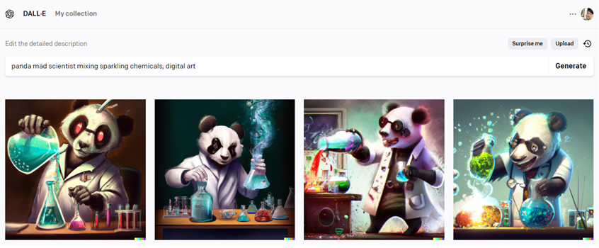 DALL_E 라는 이름은 픽사의 애니메이션 로봇 캐릭터 월-E와 스페인의 현실주의 화가 살바도르 달리의 이름의 혼성어이다 구글로 접속 하고 전화번호 인증을 받아야 하지만 꽤 근사한 그림을 그려 준다. 첫달에 50개까지 만들어 볼 수 있고, 그 다음달부터 한달에 15개 까지 만들 수 있다는 제약이 있다.