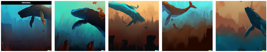 3) 이 사진을 내려받거나 저장할 수도 있지만 Variations 을 누르면 이 그림을 기준으로 다시 4개의 변형된 그림을 보여 준다.