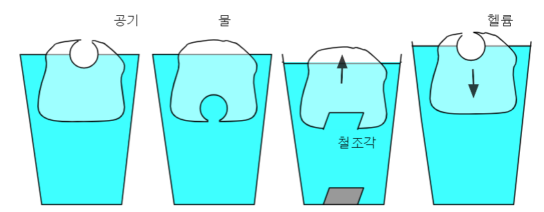 부력에 대한 내용을 배운 후, 확실히 이해 했는지를 확인하기 위한 실험이다. 실제 수업시간에 윗접시 저울이나 전자 저울을 이용해서 탐구 실험해 보게 하는게 목표다. 참고로 부력이란 기체나