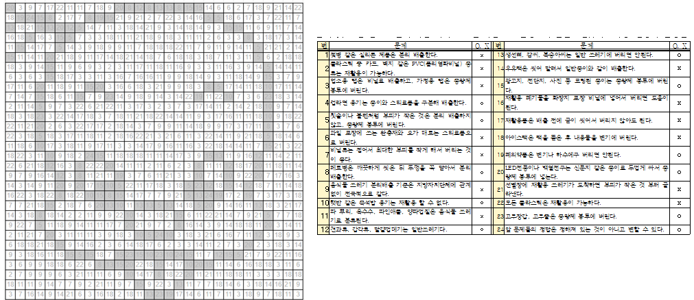 둘리그림-분리수거문제 시트를 복사해서 사용하세요 맞는답번호 O,틀린답번호 X,1,2,3,4,5,6,7,8,9,10,11,12,13,14 4,1,1 5,2,2 8,3,3 10,6,4 12,7,5 13,9,6 15,11,7 19,14,8 20,16,9 23,17,10 24,18,11 21,12 22,13 14 15 16 17 18 19 20 21