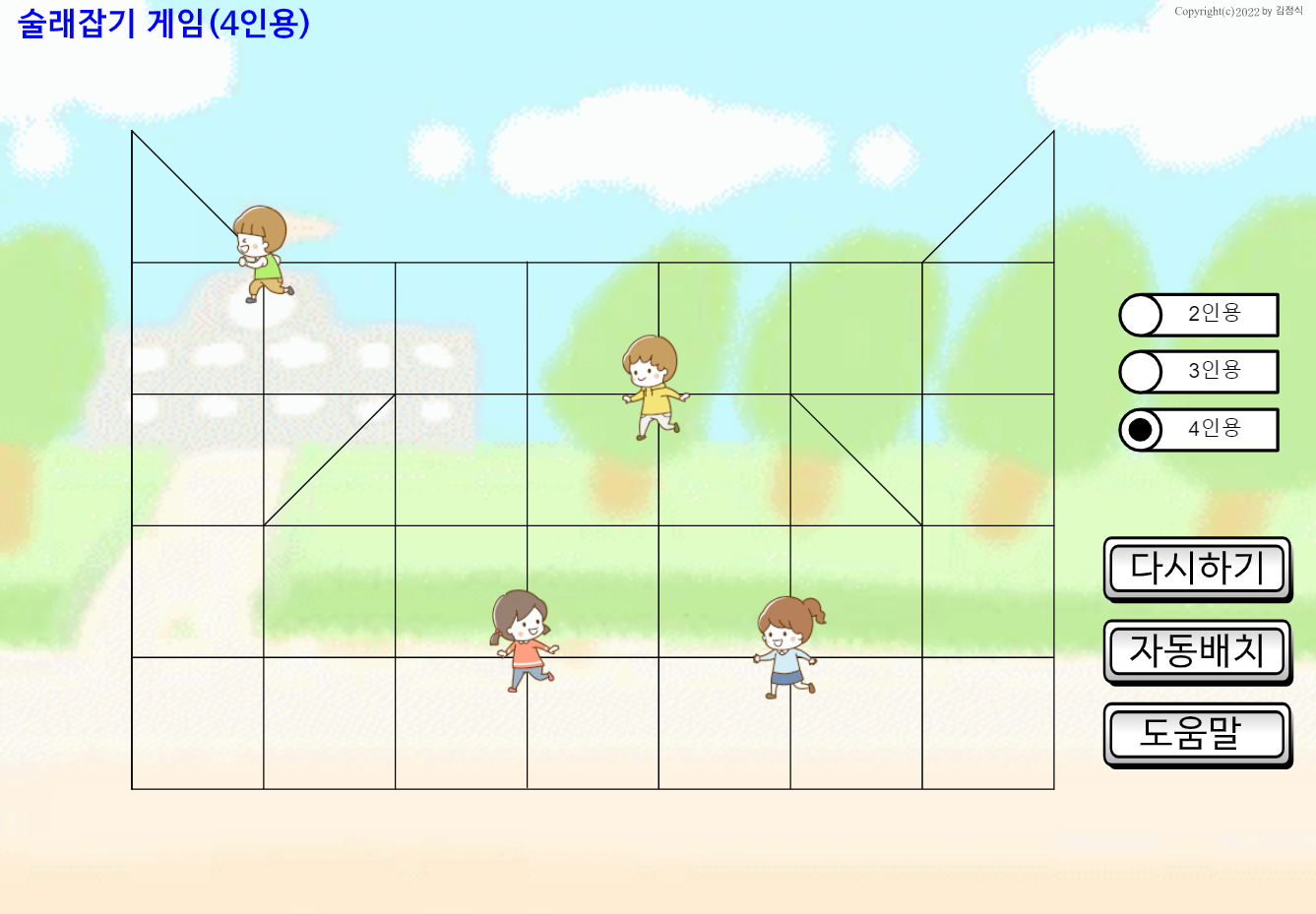 예전에 만든 도둑잡기 2인용 게임을 한 모둠이 함께 할 수 있도록 4인용 게임으로만들어 보았다.