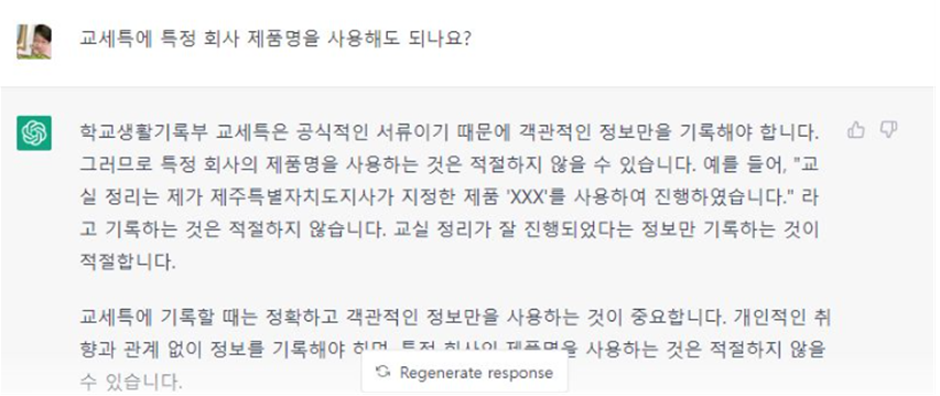 예를 들면 ‘생활기록부에 제품명을 써도 될까?’ 라는 똑같은 질문에 안된다고 답변할 때도 있고, 가끔은 소프트웨어명 같은 경우 된다고 답할 때도 있었다.