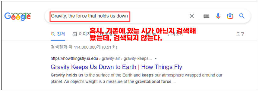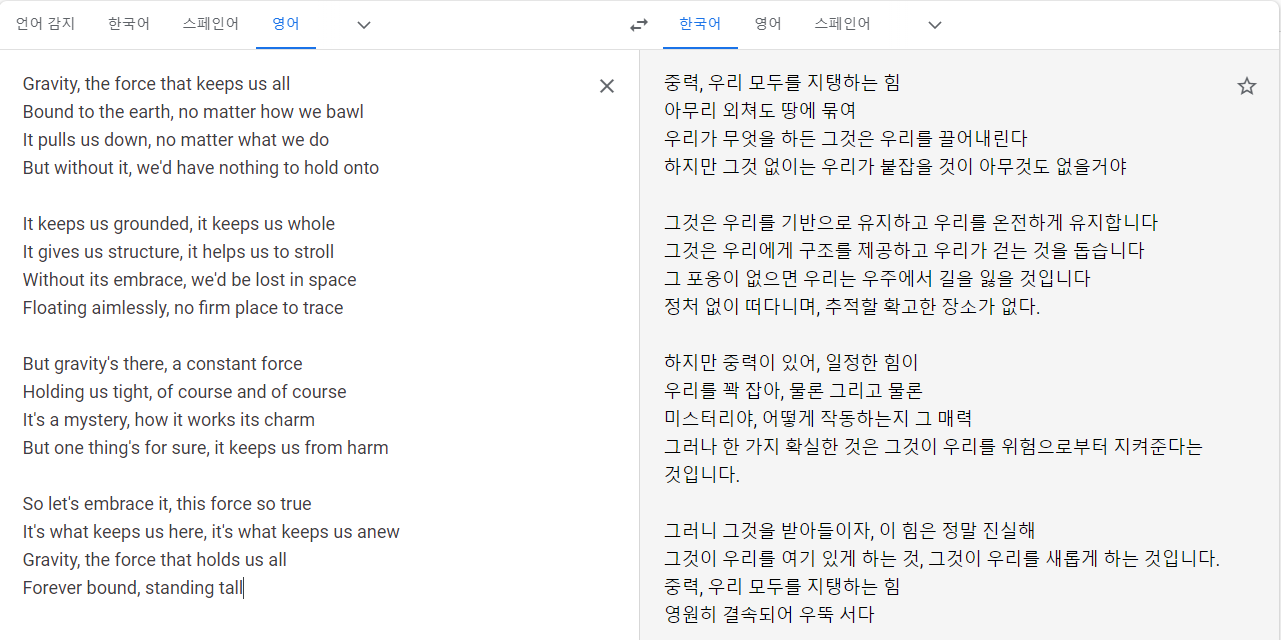 영어로 답변한 중력 관련 시 번역