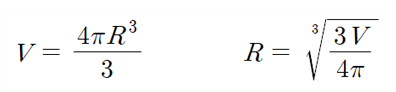 풍선의 부피가 1.5L가 되면 풍선의 반지름은 얼마나 될까? 구 부피를 계산하는 공식에 넣어 보면 금방 알 수 있다. 부피는 반지름의 세제곱에 비례하므로