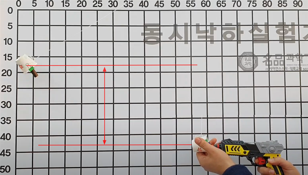 - 종이컵이 돌아가거나 기울어질 수 있으니, 잘 맞춰서 수평으로 발사한다.