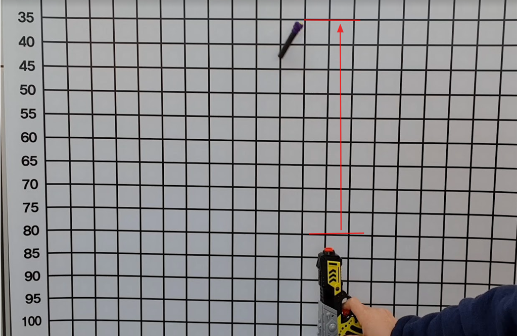 라. 총알이 가장 높이 올라가 멈추는 순간을 표시하고 높이를 측정한다.