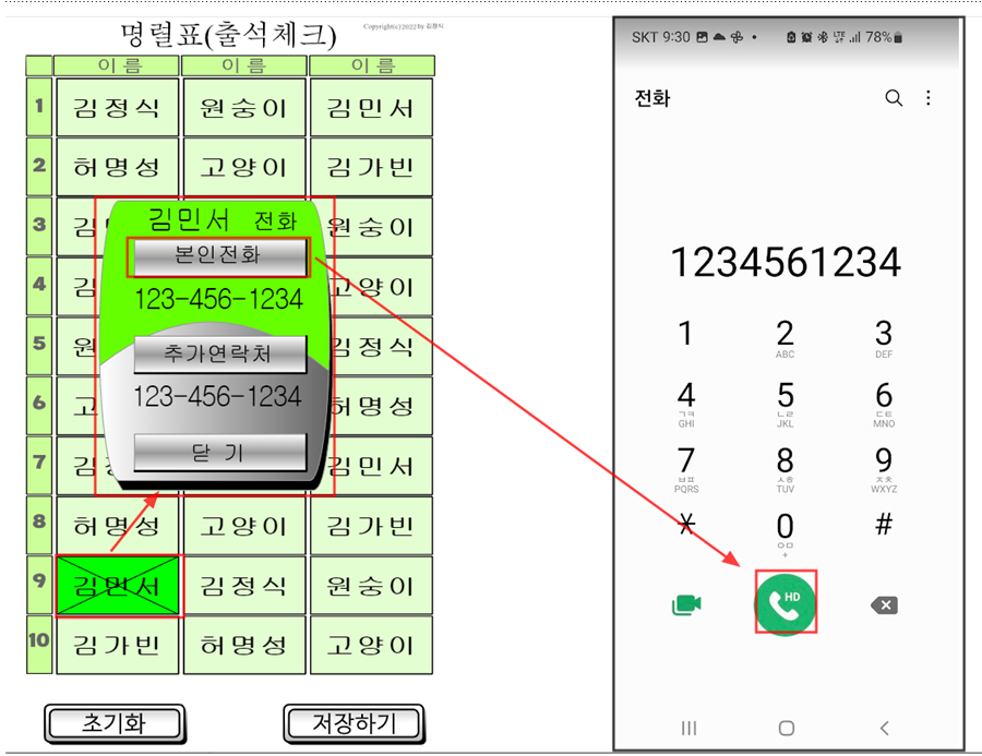 교사를 위한 인원점검 웹 명렬표다. 종이 명렬표 없이 간단하게 학생들 체크를 하거나, 원하는 학생에게 전화를 걸 수 있는 아주 간단한 프로그램이다. 학기초에 한번반 설치해 두면 1년 동안 편