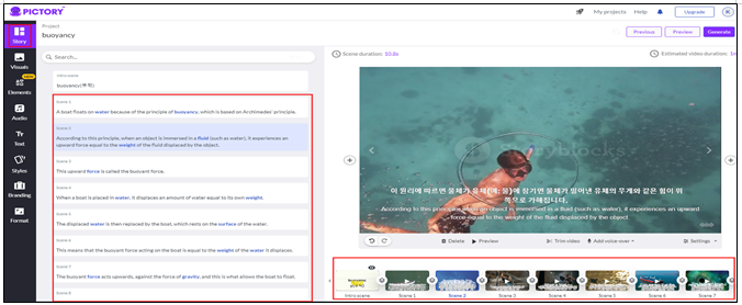 다음은 부력에 대한 학습 영상을 제작하는 과정이다.