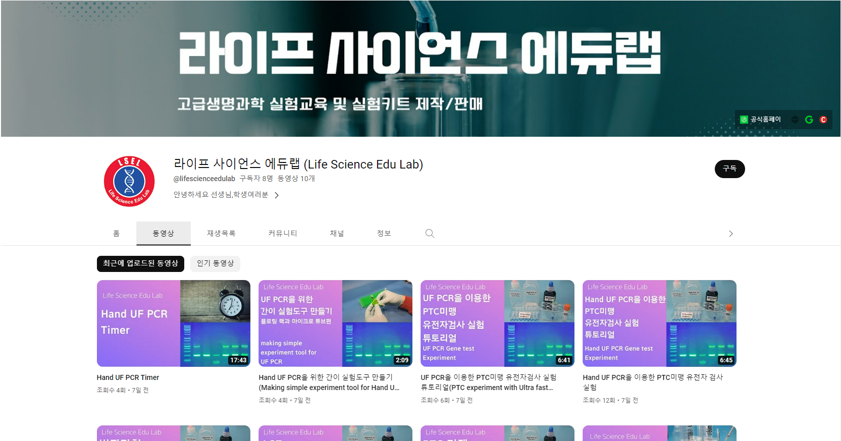 그리고 이 실험서의 분자생물학 관련 고급 실험은 선생님들이 쉽게 접할 수 있도록 1회용 실험키트로 개발하여 인터넷 쇼핑몰(라이프사이언스에듀랩,네이버쇼핑몰, 지마켓, 쿠팡에서 '라이프사이언스에듀랩' 검색)을 통해 보급하고 계신다.