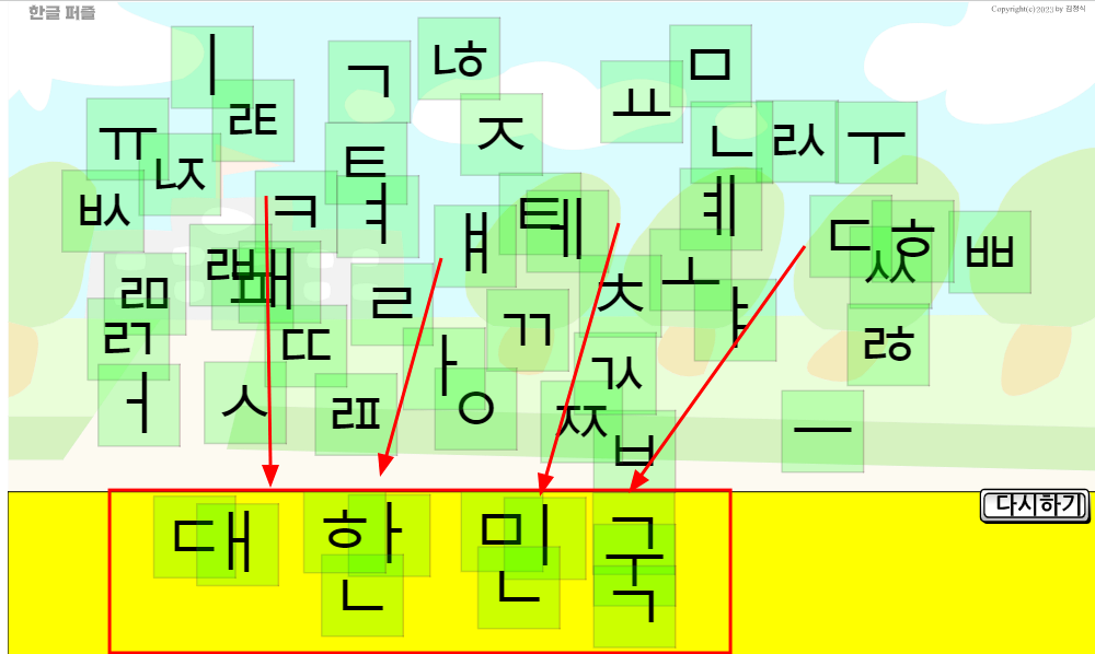 한글은 받침이 있어서 까다롭긴 한데, 블록을 겹치게 하는 걸로 해결했다.