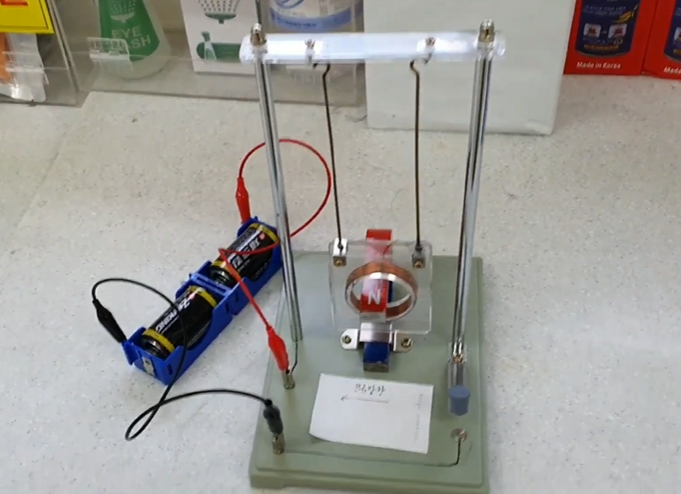 전형적인 전기그네 실험장치 설치해 주고, 힘을 받는 방향을 맞추도록 한다.