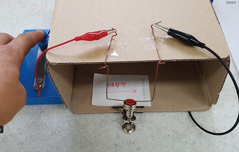 과학실 전기그네가 원형으로 코일이 감겨 있어서, 자석사이에 흐르는 전류의 방향을 표시해 주는 것이 필요하다.